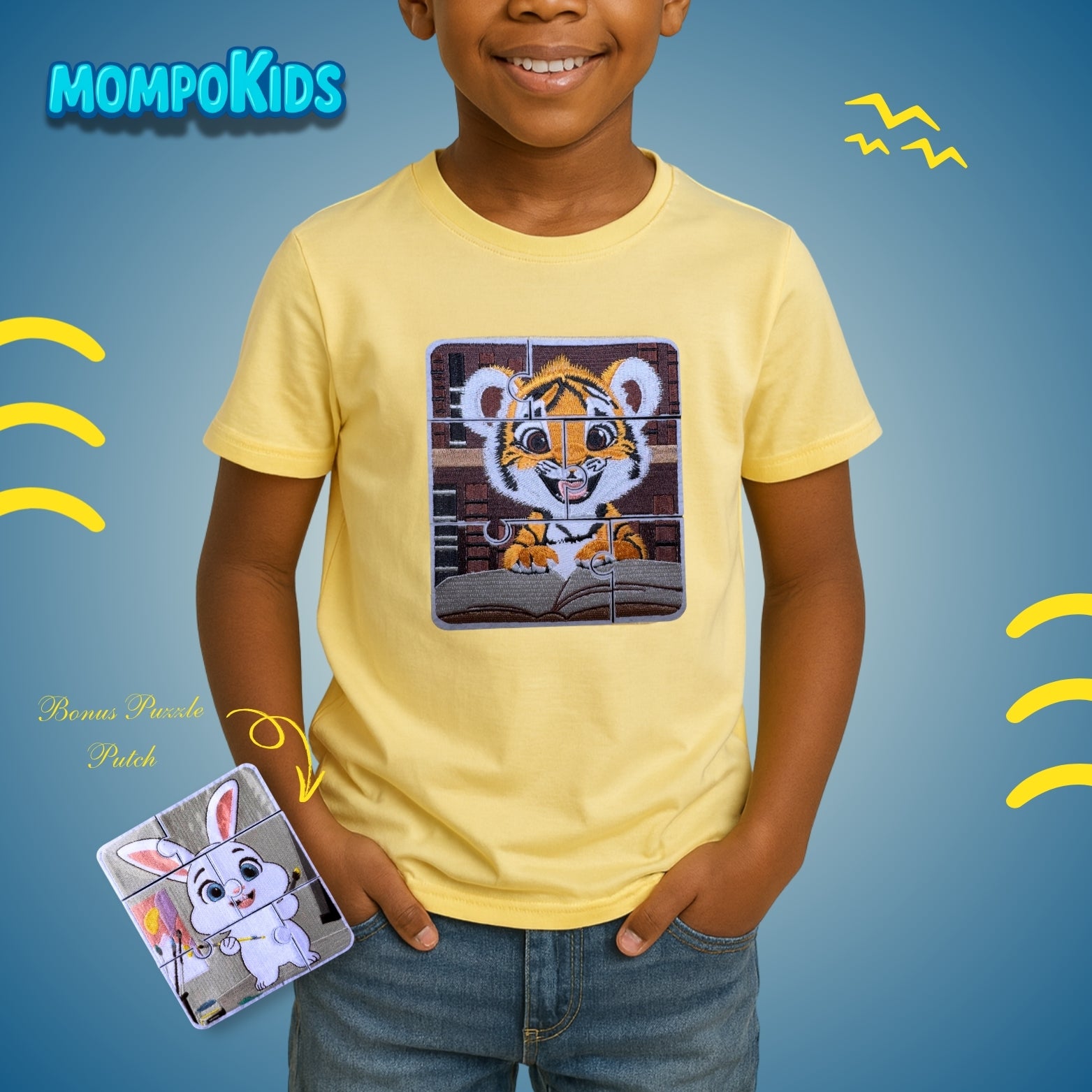 MOMPOKIDS Puzzle Up Tee Collection – Fun & Changeable Designs 🧩