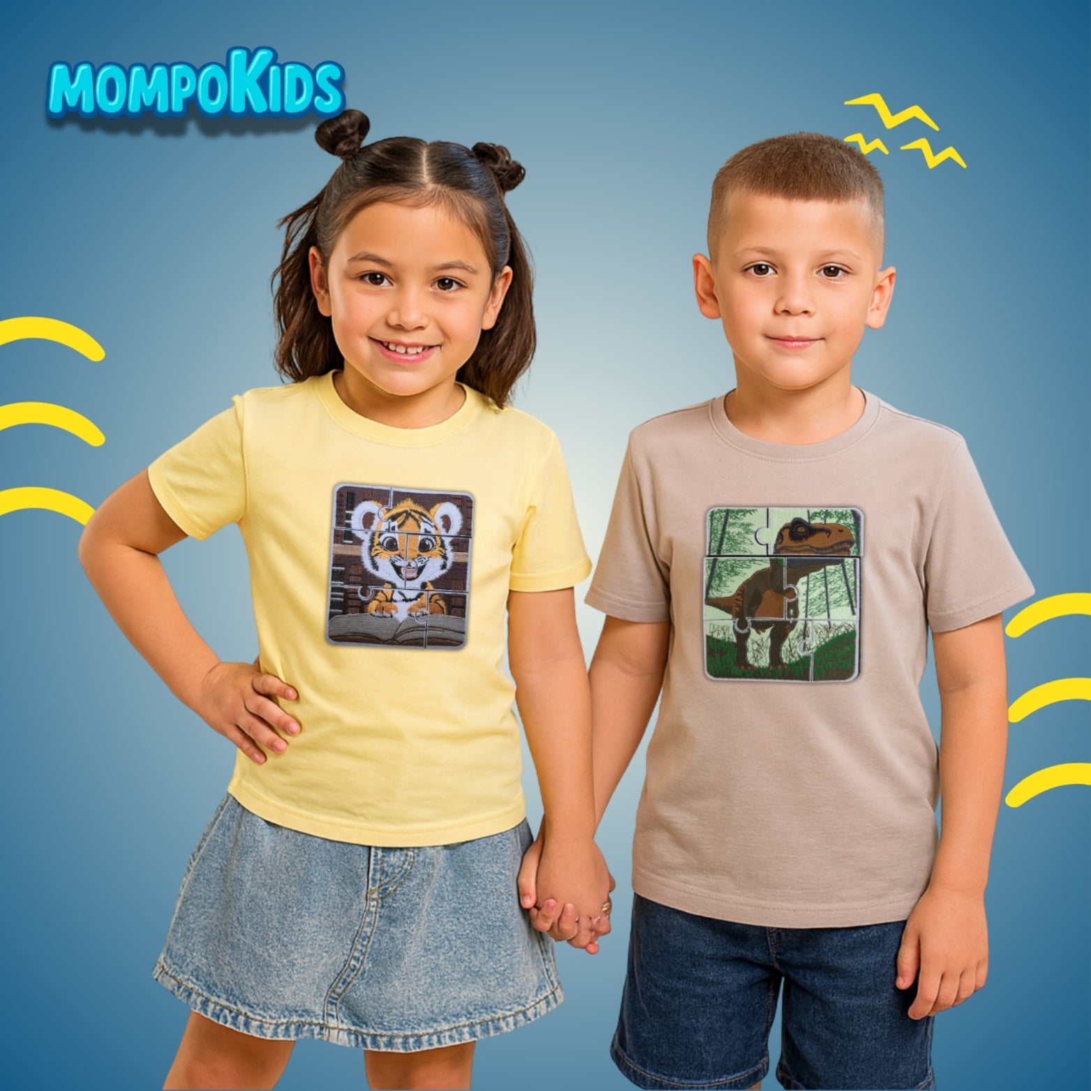 MOMPOKIDS Puzzle Up Tee Collection – Fun & Changeable Designs 🧩